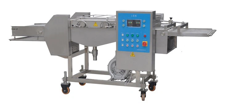 Maskin for tynn batterbeleggegner seg til å belegge kjøttkoteletter, Mc-nuggets, potetpai med tynn røre. Den kan brukes sammen med automatisk formemaskin, paneringsmaskin, frityrkoker eller kan også brukes enkelt. Slåmaskin kan fullføre prosessen med å slå forskjellige produkter, så den er en god hjelper for produsenten av slangemat.