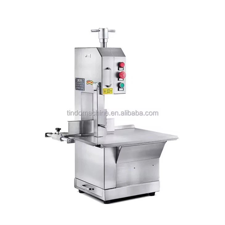 Flat kroppsdesign, dekkplate i rustfritt stål, mathygienisk og lett å rengjøre: sagbeltet er stabilt og vil ikke vandre under saging, tykkelsesjusteringsplaten er forsterket for å lette justeringen av bearbeidingstykkelsen, og vil ikke riste ved bevegelse. Utstyrt med en sikkerhetstrykkstangdesign for å forbedre arbeidssikkerheten, er maskinen vanntett og enkel å rengjøre, sikker og hygienisk. Høy hestekrefter har fordelene med kompakt struktur, vakkert utseende, enkel betjening, høy effektivitet, lavt strømforbruk, enkel rengjøring og vedlikehold, og god beinsageeffekt.